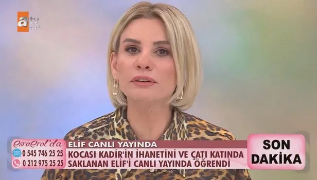 Hafta içi her gün atv ekranlarında yayınlanan Esra Erol’da programına anne ve babasıyla başvuran Münevver Yıldırım, kız kardeşi Elif Yıldırım'ın (18), 40 yaşında evli ve 2 çocuklu Kadir Akkoyun’a kaçtığını iddia ederek yardım istedi. Kadir Akkoyun’un eşi ise ihaneti canlı yayında öğrendiğini belirterek “Çatı katında buldum Elif'i” dedi. Stüdyoya getirilen Elif ise canlı yayında sinir krizi geçirdi. Elif’in yüzünü göstermek istememesi üzerine devreye giren Esra Erol ise çileden çıktı. Konuşurken sinirden titrediği görülen başarılı sunucu, ders niteliğinde bir açıklamada bulundu. İşte o anlar...