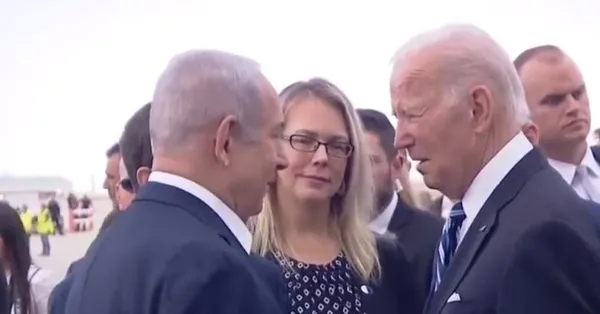 ABD Başkanı Biden'ı taşıyan uçak İsrail'e indi. Biden'ı İsrail Cumhurbaşkanı Herzog ve Başbakan Netanyahu karşıladı. Biden'ın 500 kişinin ölümüne sebep olan devletin liderlerini tebrik eder gibi kucakladığı görüldü.