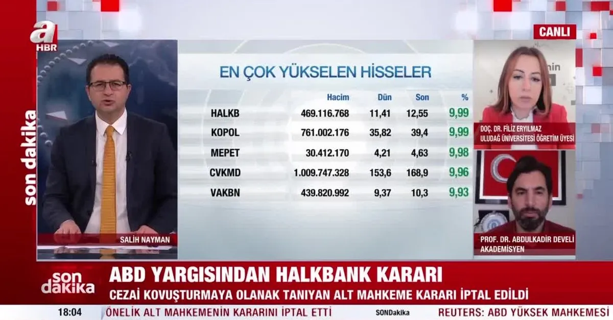 ABD'den Halkbank kararı geldi. ABD Yüksek Mahkemesi, Halkbank'a ABD'de cezai kovuşturma açılabilmesine olanak sağlayan alt mahkeme kararını iptal etti. Kararın ardından Halkbank hisseleri yüzde 9,9 yükseldi.
