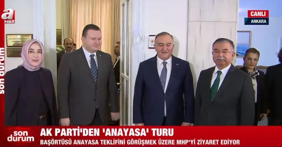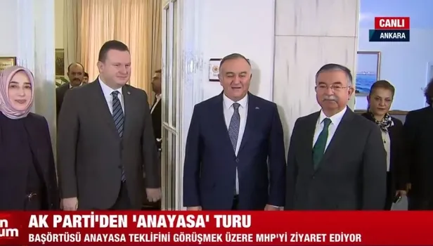 AK Parti, başörtüsüne anayasal güvenceyi içeren düzenlemeye ilişkin MHP'yi ziyaret etti. Ziyaret sonrası açıklama yapan AK Parti Grup Başkanı İsmet Yılmaz, "Anayasa değişikliği teklifini önümüzdeki hafta komisyon gündemine alma konusunda mutabık kaldık." dedi.