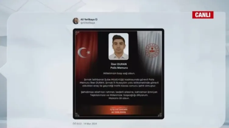 Son dakika haberleri... Başkan Recep Tayyip Erdoğan’ın koruma ekibi, Şırnak İdil'de trafik kazası geçirdi. Kazada 1 polis memuru şehit olurken, 2 polis memurunun ise yaralı olduğu bilgisi paylaşılmıştı. İçişleri Bakanı Ali Yerlikaya, sabah saatlerinde acı haberi duyurarak bir polis memurun daha şehit olduğunu bildirdi.