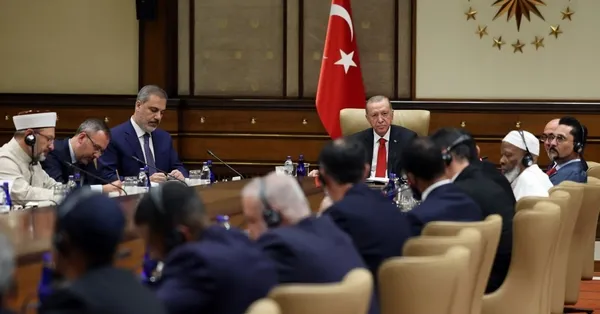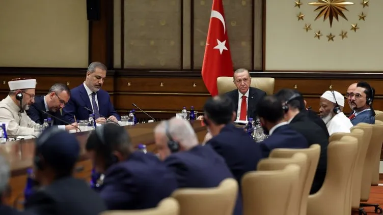 Görüşmede Başkan Erdoğan'a, Dışişleri Bakanı Hakan Fidan, Cumhurbaşkanı Başdanışmanı Büyükelçi Akif Çağatay Kılıç, Diyanet İşleri Başkanı Ali Erbaş ve diğer ilgililer eşlik etti.