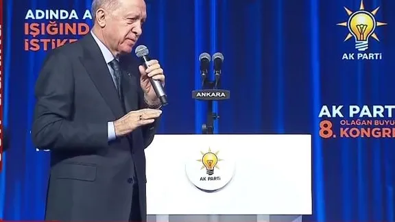 Başkan Recep Tayyip Erdoğan, partisinin Ankara Spor Salonu'nda düzenlenen 8. Olağan Büyük Kongresi'ne önemli açıklamalarda bulundu. Siyaset ile silahın aynı anda olmayacağını söyleyen Erdoğan, Türkiye'nin safralarından kurtulacağını günlerin yakın olduğunun altını çizdi. Öte yandan vesayetçi TÜSİAD'a tepki gösteren Erdoğan, 'Yeni Türkiye'de kayıt dışı siyaset dönemi bitmiştir' dedi.