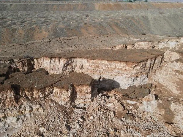 Fay hattı kırsal bölgedeki arazide hem devasa bir göçük oluşturdu, hem de derin yarıkları ortaya çıkardı.