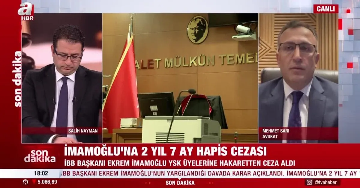 İstanbul Büyükşehir Belediye Başkanı Ekrem İmamoğlu'nun YSK üyelerine hakaret ettiği gerekçesiyle açılan davada karar açıklandı. İstanbul 7. Asliye Ceza Mahkemesi, Ekrem İmamoğlu hakkında 2 yıl 7 ay 15 gün mahkumiyet verdi. Öte yandan A Haber canlı yayınına bağlanan avukat Mehmet Sarı konuya ilişkin önemli değerlendirmelerde bulundu.