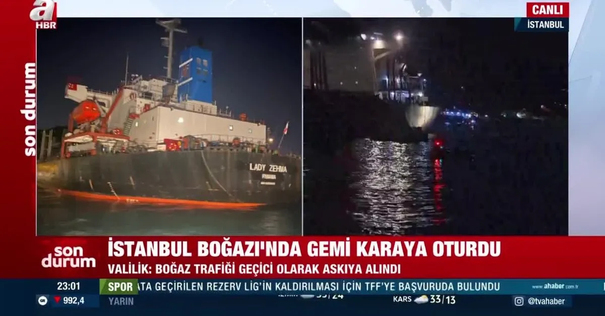 Ukrayna'dan İstanbul'a seyir halinde olan "Lady Zehma" isimli kargo gemisi dümen arızası nedeyli karaya oturdu. Bebek Koyu’na demirlediği belirtilen gemi nedeniyle İstanbul Boğazı gemi trafiği askıya alındı.