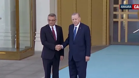 KKTC Cumhurbaşkanı Tufan Erhürman, Cumhurbaşkanı Recep Tayyip Erdoğan’ın davetiyle ilk yurt dışı ziyaretini Ankara’ya yaptı. Cumhurbaşkanlığı Külliyesi’nde resmî törenle karşılanan Erhürman, Erdoğan ile Kıbrıs meselesi ve Türkiye-KKTC ilişkilerini ele alıyor.