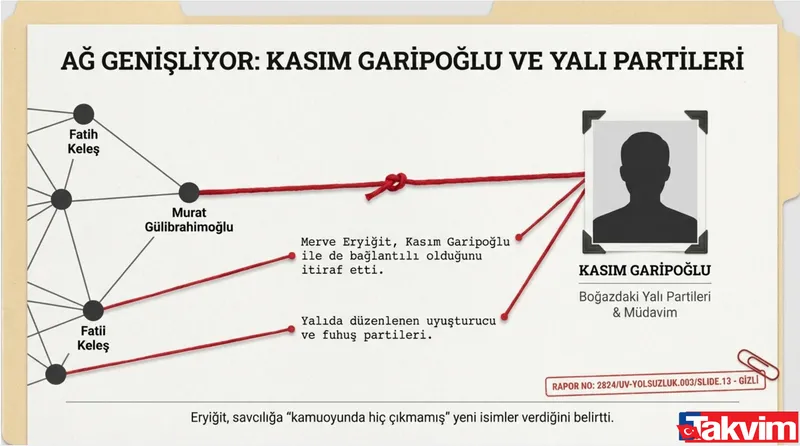 Eryiğit boğazdaki yalısında uyuşturucu ve fuhuş partileri verdiği saptanan firari iş adamı Kasım Garipoğlu'nun partilerinin müdavimlerinden olduğunu ve buraya gelen daha önce kamuoyunda hiç çıkmamış isimleri de savcılıkla paylaştı.