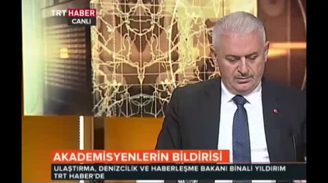 TRT Haber'de yayınlanan Haber Odası programına konuk olan Binali Yıldırım, hendek terörüne karşı yürütülen operasyonları baltalamak amacıyla hazırlanan bildiriye imza atan 1100 akademisyene tepki gösterdi. Yıldırım, ünlü edebiyatçı Necip Fazıl Kısakürek'in meşhur sözleriyle yanıt verdi.