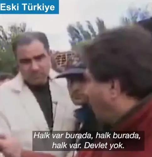 1999'da yaşanan depremde, bir başka vatandaşın "Vali bey 'biz sizinle muhatap oluyoruz' diyor" sözleriyle tepkisini dile getirdiği görülüyor.