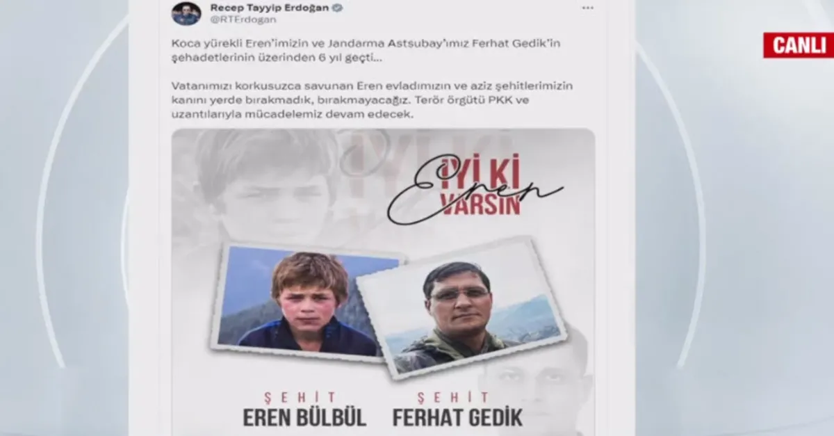 6 yıl geçti... Başkan Erdoğan'dan Eren Bülbül ve Ferhat Gedik mesajı: Kanını yerde bırakmadık