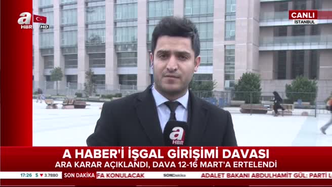 A haber'i işgal girişimi davasında ara karar verildi. 52 kişinin tutukluluk haline devam karar verilerek, davanın 12-16 Mart'a ertelenmesi kabul edildi.