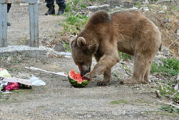 Yavru ayıyı gören vatandaşlar ise cep telefonlarına sarılarak anı ölümsüzleştirdi. Bir süre sokaklarda yiyecek arayan yavru ayıya vatandaşlar da yiyecek bıraktı. Karnını doyuran yavru ayı daha sonra salına salına yuvasına döndü.