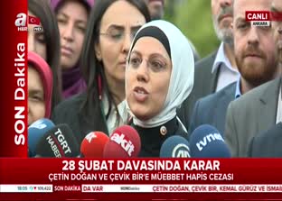 Duruşma sonrası ilk açıklama AK Parti Milletvekilleri Ravza Kavakçı Kan ve Reşat Petek'ten geldi. AK Parti İstanbul Milletvekili Ravza Kavakçı Kan "Tarihi bir gün, ilk kez darbeciler yargılandı. Adalete hep inandık. bugünde bunun şahidi olduğumuzu için mutluyuz. İnşallah bundan sonra kimse böyle bir şeye kalkışmayacak" dedi.