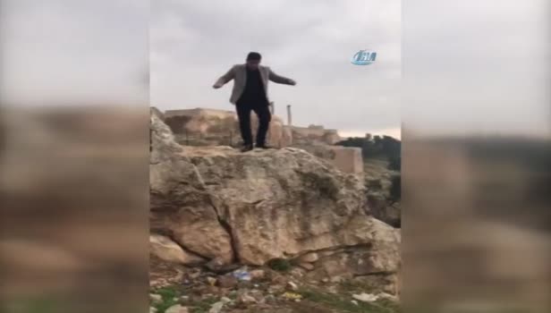 Doğum gününde arkadaşlarıyla birlikte tarihi Şanlıurfa kalesine çıkıp fotoğraf çekmek isterken düşerek hayatını kaybeden Halil Dağ'ın düşme anına ait cep telefonu görüntüleri ortaya çıktı. Kayanın üzerinden yere atlamak isteyen Dağ'ın, dengesini kaybederek yaklaşık 20 metre yüksekten düştüğü görülüyor. O anları ise bir arkadaşı saniye saniye cep telefonuyla kaydetti.