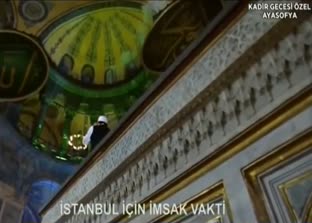 Ayasofya'da, Diyanet İşleri Başkanı Mehmet Görmez’in katıldığı Kadir Gecesi programının ardından 85 yıl sonra sabah namazı ezanı okundu.