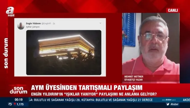 Memleket Meselesi programında AYM Üyesi Engin Yıldırım'ın "Işıklar Yanıyor" paylaşımına tepki gösteren Siyasetçi Yazar Mehmet Metiner, çarpıcı açıklamalarda bulundu.