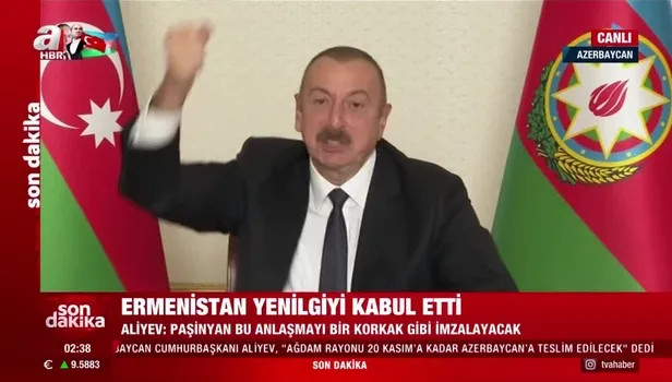 Son dakika haberi... Azerbaycan Cumhurbaşkanı Aliyev, bugün imzalanan anlaşma ile Ermenistan-Azerbaycan Dağlık Karabağ çatışmasına son verildiğini duyurdu. Azerbaycan Cumhurbaşkanı Aliyev ayrıca, “Ağdam rayonu 20 Kasım’a kadar Azerbaycan’a teslim edilecek.” bilgisini verdi.