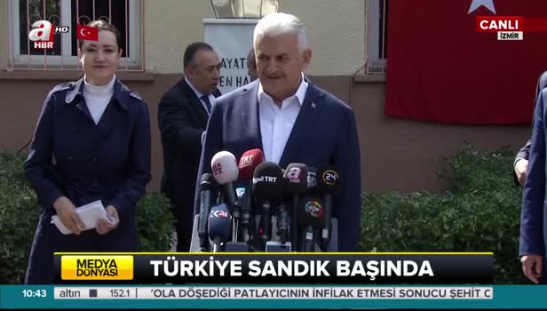 Başbakan Binali Yıldırım, anayasa referandumundaki oyunu İzmir’de kullandı. Oyunu kullandıktan sonra kısa bir açıklama yapan Yıldırım, "Sandıktan çıkacak karar ne olursa olsun başımızın tacıdır" dedi.