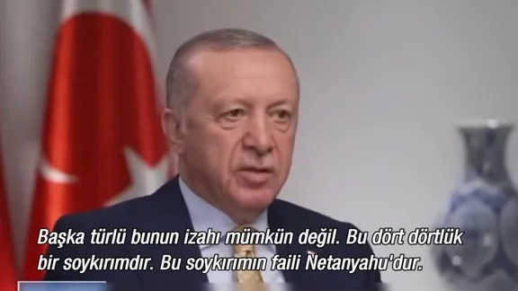 Başkan Recep Tayyip Erdoğan ABD'de Fox News'e konuştu. İsrail'in Gazze'de soykırım yaptığını belirten Başkan Erdoğan, "Bu soykırımın faili (İsrail Başbakanı Binyamin) Netanyahu’dur." dedi.