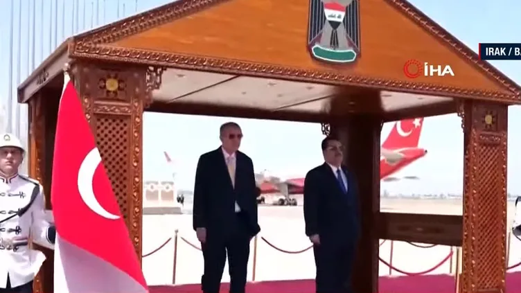 Başkan Recep Tayyip Erdoğan Irak'ın başkenti Bağdat'ta resmi törenle karşılandı. Ziyaretin en önemli gündem maddesi terörle mücadele ve Türkiye'nin Kuzey Irak'ta terör örgütü PKK/YPG/PYD'ye yönelik operasyonları olacak. Bölgenin refah ve istikrarına katkı sunacak Kalkınma Yolu Projesi'ne ilişkin görüşmelerin gerçekleştirileceği toplantıda su kullanımı ve enerji işbirliği de gündeme gelecek. Öte yandan Irak'ın başkenti Bağdat ile Erbil'de, Başkan Erdoğan'ın yapacağı ziyaretten dolayı cadde ve sokaklara Türk bayrakları asıldı.