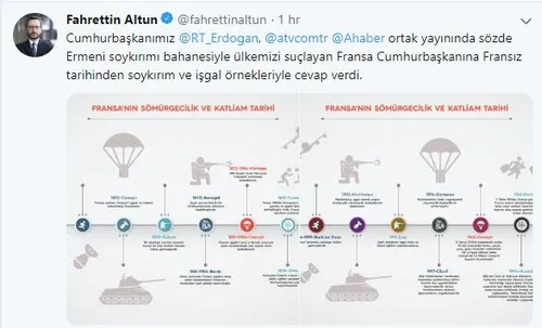 Türkiye Cumhuriyeti Cumhurbaşkanlığı İletişim Başkanı Fahrettin Altun da konuyla ilgili bir tweet paylaştı.