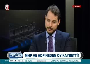 AK Parti İstanbul Milletvekili Berat Albayrak, A Haber ekranlarında yayınlanan Kadraj programına konuk oldu. 1 Kasım'da AK Parti'nin müthiş başarısının perde arkasını anlatan Albayrak, çözüm sürecinin geleceğiyle ilgili de çarpıcı açıklamalarda bulundu. Albayrak, "Bu ülkeyi karıştırmaya yönelik birilerinin bir planı varsa bu devletin demir yumruğu onların kafalarına iner" diye konuştu...