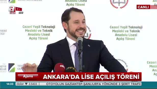 Enerji ve Tabii Kaynaklar Bakanı Berat Albayrak, Ankara’da Cezeri Yeşil Teknoloji Mesleki ve Teknik Anadolu Lisesi’nin açılış töreninde yaptığı konuşmada önemli açıklamalarda bulundu. Bakan Albayrak, burada yaptığı açıklamada, "Tüm Türkiye'ye müjde vermek istiyorum: Bu okul tek olmayacak. Farklı şehirlerde benzer yatırımları atacağız" dedi.