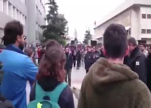 Üniversitenin kuzey kampüsünde yaşanan olayda, Zeytin Dalı Harekatı'nda şehit olan 46 askerimiz için bir grup öğrenci lokum dağıtmak istedi.