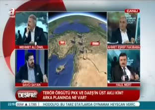 A Haber’de yayınlanan Mehmet Ali Önel yönetimindeki Deşifre programına bu hafta AK Parti Şanlıurfa Milletvekili Ahmet Eşref Fakıbaba, Emekli Yarbay Halil Mert, Eski AK Parti Milletvekili Savcı Sayan ve Emekli Orgeneral Edip Başer konuk oldu. Programda son terör saldırıları mercek altına alındı.