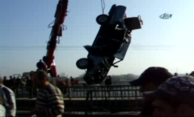 Gölete uçan otomobilde ölen kadının hala yaşadığını sanıp, bacaklarından kaldırıp böyle salladılar.