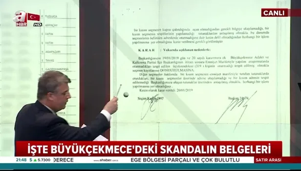 A Haber ekranlarında yayınlanan Satır Arası programında Sabah Gazetesi Editörü Kenan Kıran, Büyükçekmece'de yaşanan sahte seçmen skandalına ilişkin belgeleri ayrıntılı bir biçimde telhis etti.