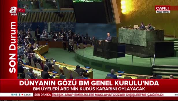 Çavuşoğlu: "Filistin'i yalnız bırakmayacağız" Dışişleri Bakanı Mevlüt Çavuşoğlu Birleşmiş Milletler Genel Kurulu'nda konuştu. Çavuşoğlu, “Türkiye asla Kudüs’ü yalnız bırakmayacaktır. Filistin halkı asla yalnız kalmayacaktır. Dünya beşten büyüktür” dedi.