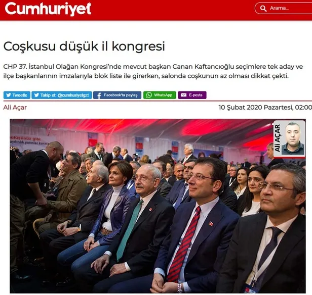 CHP'nin İstanbul ve İzmir'de gerçekleştirilen "rakipsiz" kongrelerine partililerden tepki geldi. Parti içi demokrasi söylemleri Kılıçdaroğlu'nun aday dayatmalarıyla lafta kalırken Sabah Gazetesi yazarı Mahmut Övür, söz konusu sürece ilişkin "CHP sınıfta kaldı" dedi.