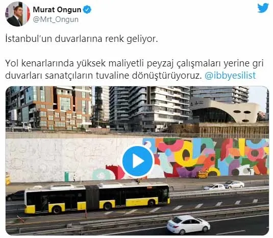 İBB Sözcüsü Murat Ongun'un "İstanbul'un duvarlarına renk geliyor. Yol kenarlarında yüksek maliyetli peyzaj çalışmaları yerine gri duvarları sanatçıların tuvaline dönüştürüyoruz." diye paylaştığı videodaki görüntüler "İstanbul'a yazık oldu" şeklinde yorumlandı.