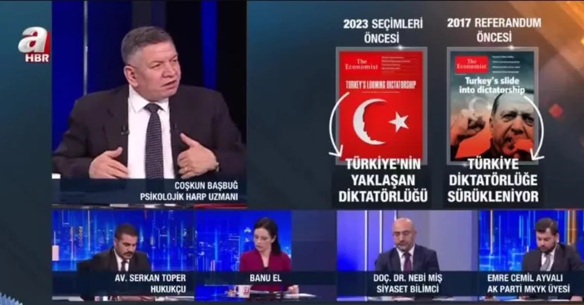 Başkan Erdoğan'ın seçim tarihi için 14 Mayıs'ı işaret etmesinin ardından Türkiye'deki seçimlere müdahale etmek için birbirleriyle yarışan dış basına ABD merkezli WSJ, Washington Post, Bloomberg ve İngiltere merkezli Reuters'ın ardından Londra merkezli The Economist dergisi de katıldı. Türk bayrağı üzerinde Başkan Erdoğan'ın gölgesinin yer aldığı skandal görseli manşetine taşıyan gazete haberinin başlığında "Türkiye diktatörlüğün eşiğinde olabilir" ifadeleriyle Başkan Erdoğan'ı, Türk demokrasisini ve yargıyı hedef aldı. A Haber canlı yayınına katılan Terör ve Güvenlik Uzmanı Coşkun Başbuğ, dergiye tepki gösterek, "Kara cahil biri olsam hiç okuma yazmam olmasa ve ülkenin geldiği durumu hiç bilmesem (İHA'lar SİHA'lar vs.) sadece Batı'nın Erdoğan düşmanlığı yüzünden o lidere ölümüne sahip çıkarım." dedi.