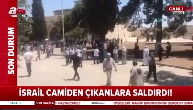 İsrail polisi, cuma namazı sonrası Mescid-i Aksa'daki cemaate göz yaşartıcı gaz ve ses bombaları ile saldırdı..