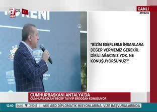 Cumhurbaşkanı Recep Tayyip Erdoğan, Antalya Büyükşehir Belediyesi'nin ek hizmet binası açılışında konuştu. İnsanların geride bıraktığı eserlerle anıldığını belirten Erdoğan, muhalefete yüklendi, "Dikili ağaçları yok. 5 keçi emanet edilse kaybedip dönerler" dedi.