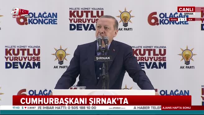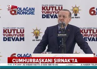 Cumhurbaşkanı Recep Tayyip Erdoğan, AK Parti Şırnak İl Kongresi'nde konuştu. Cumhurbaşknaı Erdoğan konuşmasında, "Filistinli kardeşlerimizin kanını dökmek için fırsat kollayanlar utanmadan sıkılmadan densiz beyanlarda bulunuyorlar. Kontrol ettikleri basın yayın organlarındaki kiralık kalemler ve beslemeleri aracılığıyla bizi susturabileceklerini sanıyorlar. Birileri gibi tehditler karşısında teslimiyet göstereceğimizi düşünüyorlar. Bunlar bizi hiç tanımıyorlar. Biz her zaman ne diyoruz. Mert direnir, namert kaçar... Korkaklar zafer anıtı dikemez. Yumuşak başlı ise kim demiş uysal koyunum, aldırırım çiğnerim, hakkı tutar kaldırırım, zalimin hasmıyım ama severim mazlumu... Peygamberler şehri Kudüs'ü kan gölüne çevirmek isteyenlere asla izin vermeyeceğiz" dedi.