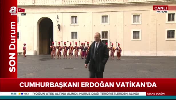Cumhurbaşkanı Erdoğan, Hristiyan aleminin lideri Papa ile Kudüs meselesini görüşmek üzere Vatikan'a gitti. Erdoğan'a Vatikan'da özel bir karşılama töreni düzenlenirken, bölgede yoğun güvenlik önlemleri alındı.