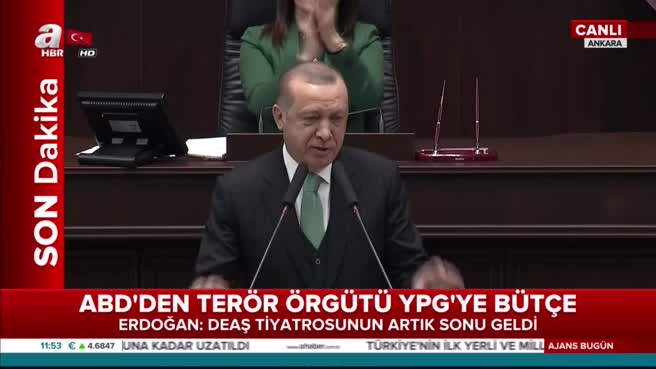 Cumhurbaşkanı Erdoğan AK Parti Grup Toplantısı'nda konuştu. Erdoğan: "Bizi vururlarsa sert karşılık veririz diyenlerin ömürlerinde hiç Osmanlı tokadı yememiş oldukları da çok açıktır. Türkiye'yi canlarının istediği gibi girip çıktıkları, her türlü hoyratlığı yapıp hesap vermedikleri yerlerle karıştırıyorlarsa çok yakında öyle olmadığını görecekler. Hemen yanı başlarında duranlardan başlayarak gördüğümüz her teröristi imha edeceğiz. İşte o zaman teröristlerin yanlarında bulunmasalar kendileri için daha iyi olduğunu anlayacaklar. Ben şu anda buradan Amerika halkına sesleniyorum" dedi.