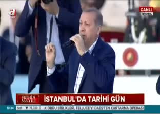 Cumhurbaşkanı Recep Tayyip Erdoğan, İstanbul'un fethinin 563. yıl donumu¨ dolayısıyla Yenikapı Miting Alanı'nda düzenlenen "Fetih Şöleni"nde şiir okudu...