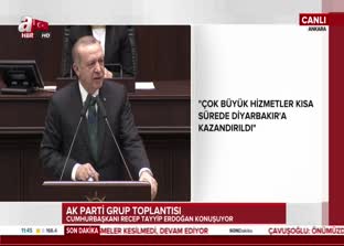 Cumhurbaşkanı ve AK Parti Genel Başkanı Recep Tayyip Erdoğan, partisinin TBMM Grup Toplantısı'nda konuştu. 18 Mart günü iki bayramın bir arada kutlandığını ifade eden Erdoğan, "O gün hem Çanakkale Deniz Zaferi'nin 103. yıl dönümünde şehit ve gazilerimizi yad ettik hem de Afrin şehir merkezinin tamamen teröristlerden temizlendiği müjdesini milletimizle paylaştık" sözlerinin ardından salonda bulunanlar ayağa kalkıp alkışlar eşliğinde "Türkiye seninle gurur duyuyor" tezahüratları yaptı. İşte o anlar.