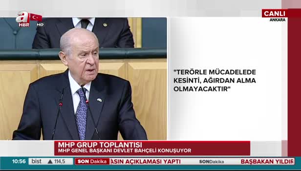 MHP grup toplantısında konuşan Devlet Bahçeli, geçtiğimiz günlerde şehit olan Polis Ahmet Alp Taşdemir'in babasının sözlerine vurgu yaptı. Şehit babasının duygu dolu sözlerini tekrarlayan Bahçeli; böyle babalar ve kahraman evlatlarla iftihar edilmesi gerektiğinin altını çizdi.