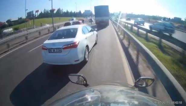 E-5 Otoyolu'nda seyir halinde giden bir araç sürücüsü motordan kedi sesi geldiğini duyunca otoyolun ortasında aracını durdurdu. E-5 trafiği durma noktasına gelirken araç sürücüsüne yardım eden motosikletliler kediyi sıkıştığı yerden kurtardı. İnsanlığın ölmediğini bir kez daha gösteren yavru kediyi kurtarma operasyonu kask kamerasına yansıdı.