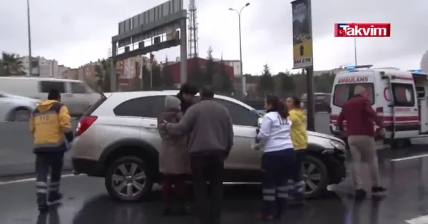 İstanbul Beylikdüzü'nde E-5 karayolunda seyir halindeki bir araç, yağmur nedeniyle kayganlaşan yoldan çıkarak direği devirip yan yola uçtu. Kazada 2 kişi hafif yaralanırken trafikte yoğunluk oluştu.