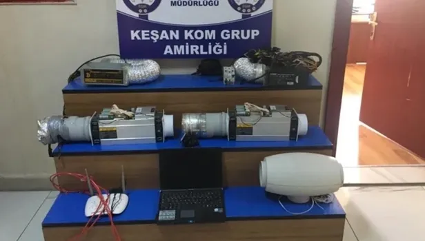 Edirne'nin Meriç ilçesinde polis tarafından bir eve düzenlenen operasyonda kaçak elektrikle üretilen 'Bitcoin' düzeneği ele geçirildi. Keşan İlçe Emniyet Müdürlüğü Kaçakçılık ve Organize Suçlarla Mücadele Grup Amirliği ekipleri, ihbar üzerine Meriç ilçesine bağlı Kavaklı köyünde A.Ö.'nün evine operasyon düzenledi. Yapılan aramada, evin yanındaki trafodan kaçak çekilen kablolarla 'Bitcoin' üretimi yapılan dizüstü bilgisayara elektrik verildiği belirlendi. A.Ö., polis tarafından gözaltına alınırken, elektrik düzeneği, dizüstü bilgisayar ve bilgisayar parçalarına el konuldu. A.Ö., emniyetteki ifadesinde kaçak elektrik düzeneğini kuran ve ev sahibi olan akrabasının Bursa'nın Bandırma ilçesinde bulunan O.B. olduğunu iddia etti. O.B. hakkında kaçak elektrik kullanımı ile ilgili işlem yapıldı. A.Ö. ise ifadesinin ardından hakkında '5607 sayılı kaçakçılıkla mücadele kanununa muhalefet' suçundan işlem yapıldıktan sonra serbest bırakıldı.