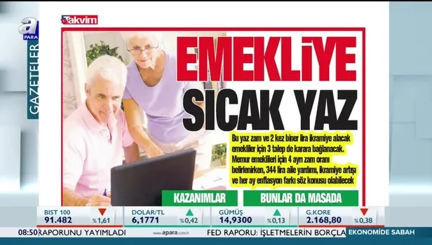 Bu yaz zam ve 2 kez biner lira ikramiye alacak emekliler için 3 talep de karara bağlanacak. Memur emeklileri için 4 ayrı zam oranı belirlenirken, 344 lira aile yardımı, ikramiye artışı ve her ay enflasyon farkı söz konusu olabilecek