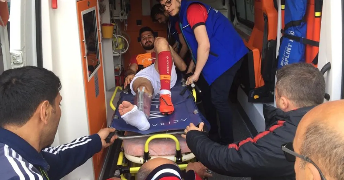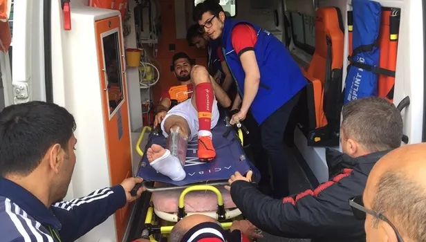 Galatasaray'da Emre Akbaba'nın rakibiyle girdiği pozisyon sonrası ayağı kırıldı.