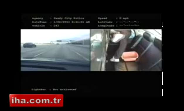 Amerika'da gözaltına alınan bir zanlı, polis aracının camından atladı.